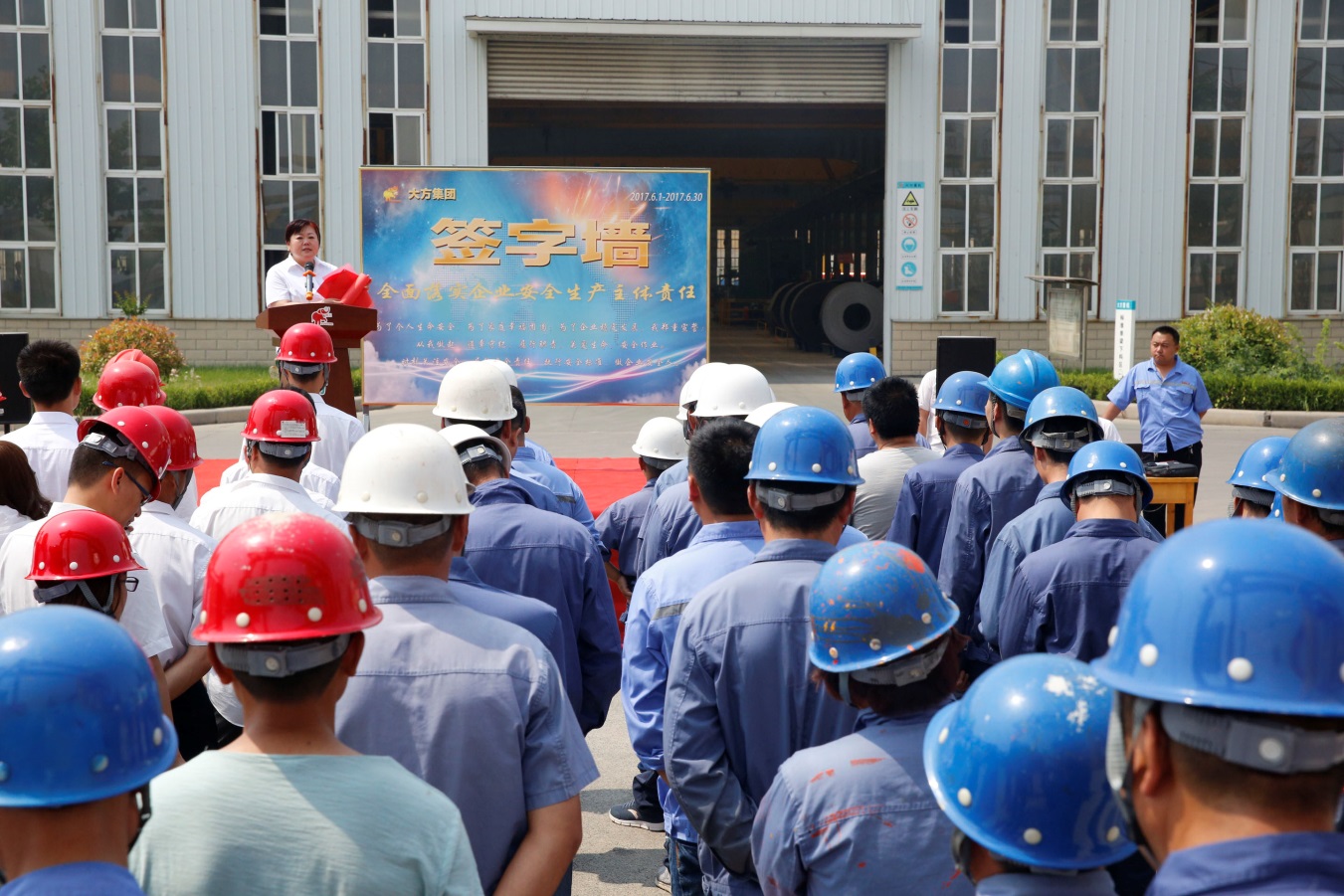 為進(jìn)一步響應(yīng)國(guó)家安全生產(chǎn)月活動(dòng)精神,把安全生產(chǎn)責(zé)任和安全生產(chǎn)方針落實(shí)到實(shí)處,營(yíng)造“安全生產(chǎn),人人有責(zé)”的濃厚氛圍,2017年5月31日上午10點(diǎn),大方集團(tuán)隆重開(kāi)展了以“全面落實(shí)企業(yè)安全生產(chǎn)主體責(zé)任”為主題的安全月啟動(dòng)大會(huì)儀式暨安全承諾簽字儀式活動(dòng),吹響了夏季安全生產(chǎn)的號(hào)角。總經(jīng)理胡旭、副總經(jīng)理郭景陽(yáng)等公司高層領(lǐng)導(dǎo)、各部門(mén)主任級(jí)以上人員、專(zhuān)職安全員、生產(chǎn)調(diào)度、質(zhì)檢員、班組長(zhǎng)、兼職安全員、班組骨干成員等參加了活動(dòng)。本次活動(dòng)由行政綜合部副部長(zhǎng)薛鳳燕主持。