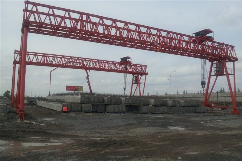 該設備既可兩臺配合抬吊預制梁,也可以單臺起重機配雙吊具起吊預制梁。主要用于將預制梁從制梁臺提吊至存梁臺位,預制梁養(yǎng)護完成后將其從存梁臺位吊運到運梁車上。